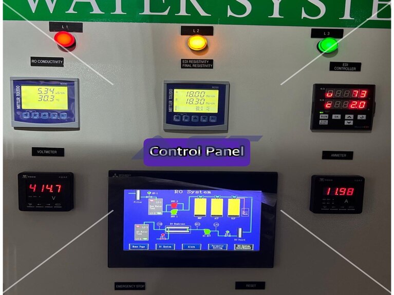To achieve ASTM Type I water quality, the system incorporates a robust, multi-stage treatment process. It begins with pre-treatment to remove suspended solids, chlorine, and other contaminants that may affect downstream components. This is followed by Reverse Osmosis (RO), which significantly reduces dissolved salts and impurities. The final stage utilises Electrodeionization (EDI) technology to polish the water to ultrapure levels, delivering consistent quality without the need for chemical regeneration. The decentralised design enables on-demand production at the point of use, enhancing efficiency and operational flexibility.